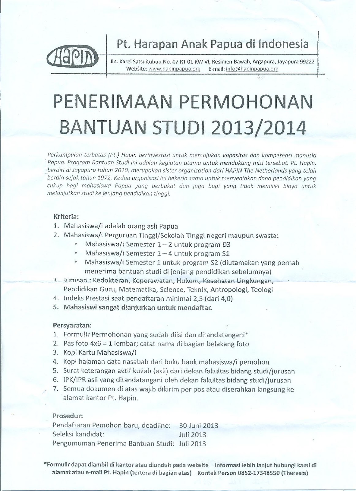 Penerimaan Permohonan Bantuan Studi 2013/2014